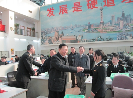 1月23日大年初一,海关总署副署长鲁培军在市口岸办主任张超美陪同下,赴上海航交所看望慰问节日期间坚守一线的干部职工。鲁培军一行分别走访慰问了浦江海关、上海海关审单处、上海海关业务三处、市口岸办浦江办事处,与基层干部职工亲切握手交谈,向他们送去新春慰问和节日祝福并合影,鲁培军还实地查看了北外滩“一门式”通关服务中心新大楼建设情况。